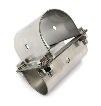 - Хомуты держат трубы за счет трения. Отверстий в трубах в месте крепления не требуется. На случай, если необходима дополнительная защита от прокручивания трубы, в центральной части хомута предусмотрено отверстие для установки болта.